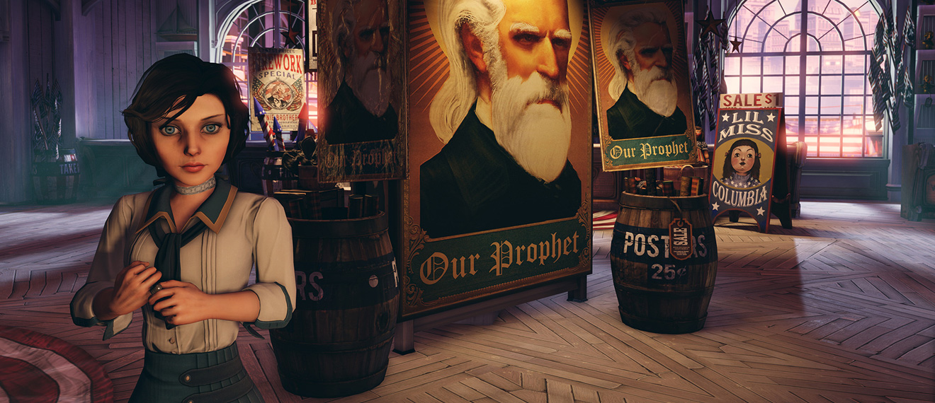 Quella che vi proporremo non è la solita recensione, bensì un’ode ad uno dei titoli più belli giocati da numerosi mesi a questa parte. Bioshock Infinite è un’esperienza che coinvolge tutti i sensi del giocatore, trascinandolo in un vortice di sensazioni da vedere e da ascoltare. Vi è mai capitato di giudicare un titolo sin dalle prime battute e marchiarlo come “epico” man mano che la storia prendeva forma? Ecco, il nuovo frutto di Ken Levine è uno di questi. Fidatevi. Booker DeWitt, l’investigatore privato che impersoniamo, viene ingaggiato per recuperare una misteriosa ragazza nella città di Columbia al fine di pagare i suoi debiti dovuti al gioco d’azzardo. Niente più ambienti claustrofobici sottomarini: Columbia è una fantastica cittadina fluttuante tra le nuvole, costruita dal governo americano e successivamente dichiaratasi indipendente. Passeggiando lungo le ampie strade ed i giardini è possibile percepire la devozione dei cittadini per il leader spirituale Zachary Comstock, tastare con mano la profonda differenza tra le classi sociali e lasciarsi trasportare dalla vitalità che scorre nelle vene di Elizabeth, la ragazza che cambierà il corso degli eventi.
