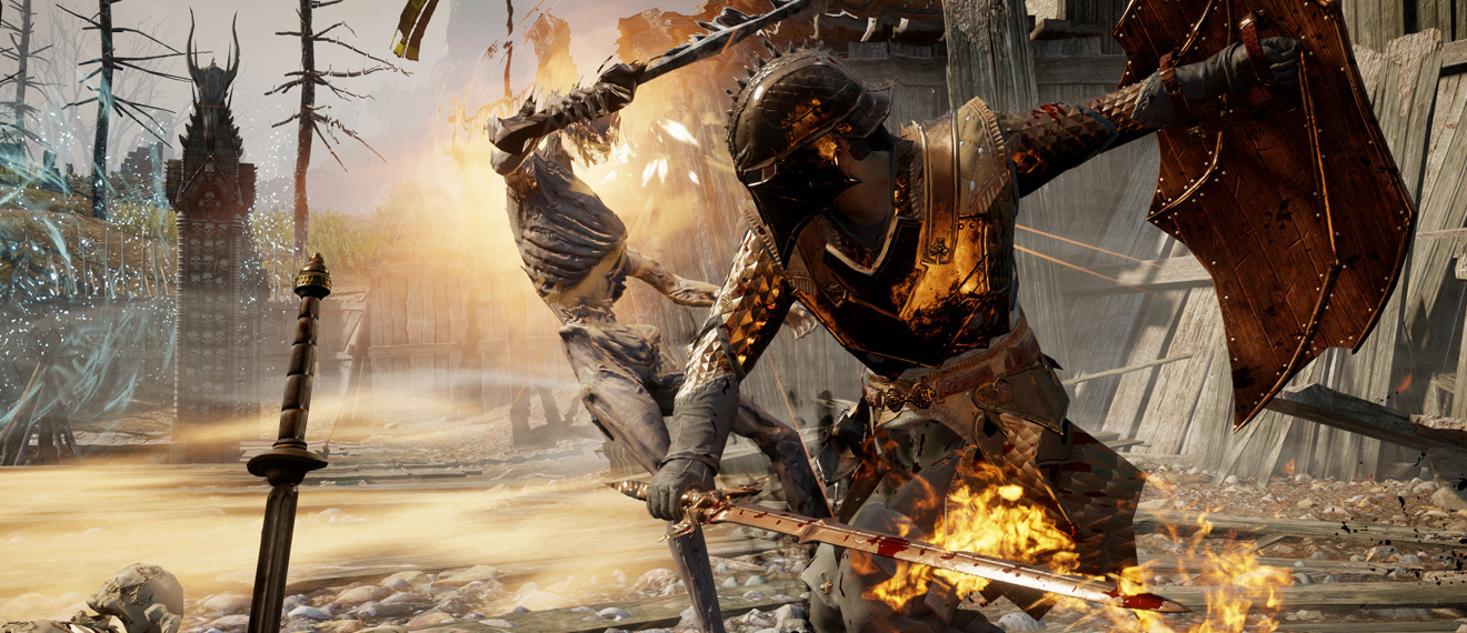 Non possono mancare all’appello le bancarelle dove poter acquistare armi ed armature oppure progetti per crearne di nuovi attraverso un ottimo sistema di crafting; personalizzare il proprio equipaggiamento, esteticamente e nelle abilità, aiuta sicuramente ad affrontare i nemici più imponenti…vi abbiamo già parlato dei draghi?! Dragon Age: Inquisition sfoggia anche una modalità multigiocatore non legata alla campagna in singolo, con personaggi già preimpostati e dei quali possiamo solo migliorarne le abilità e l’equipaggiamento, partecipando alle partite online di altri giocatori in carne ed ossa. Tecnicamente Inquisition si pregia di un dettaglio grafico notevole, ambientazioni ben caratterizzate e variegate nonostante la vastità di alcune di queste. Anche i volti dei personaggi, le armature, i nemici, sono caratterizzati da espressioni credibili. Una qualità generale che va oltre la media anche se talvolta minata da compenetrazioni poligonali, frame rate non sempre stabile ed animazioni delle cavalcature da dimenticare (!). Ottima la colonna sonora e soprattutto il doppiaggio in lingua originale con sottotitoli in italiano. In conclusione, Dragon Age: Inquisition è un’opera immensa, ricca di posti da esplorare e storie da scoprire. Nelle prime fasi di gioco siamo rimasti spiazzati proprio da questo aspetto e non è stato semplice destreggiarci tra i numerosi menù e missioni presenti nel gioco. Un grande punto a suo favore è senza ombra di dubbio la trama, ricca di colpi di scena e plasmabile attraverso le nostre scelte. Anche il sistema di combattimento, che mescola l’impronta action a quella più ragionata di uno strategico, metterà alla prova i giocatori più esperti; specialmente a difficoltà più elevate. Abbiamo trovato quasi superflua la modalità multiplayer, soprattutto perché distaccata dal singolo; un intreccio tra i due sarebbe stata una combo vincente. Le fratture aperte nel mondo di Thedas devono essere sigillate e voi siete gli unici ad avere questo potere. Siete pronti ad una nuova avventura?