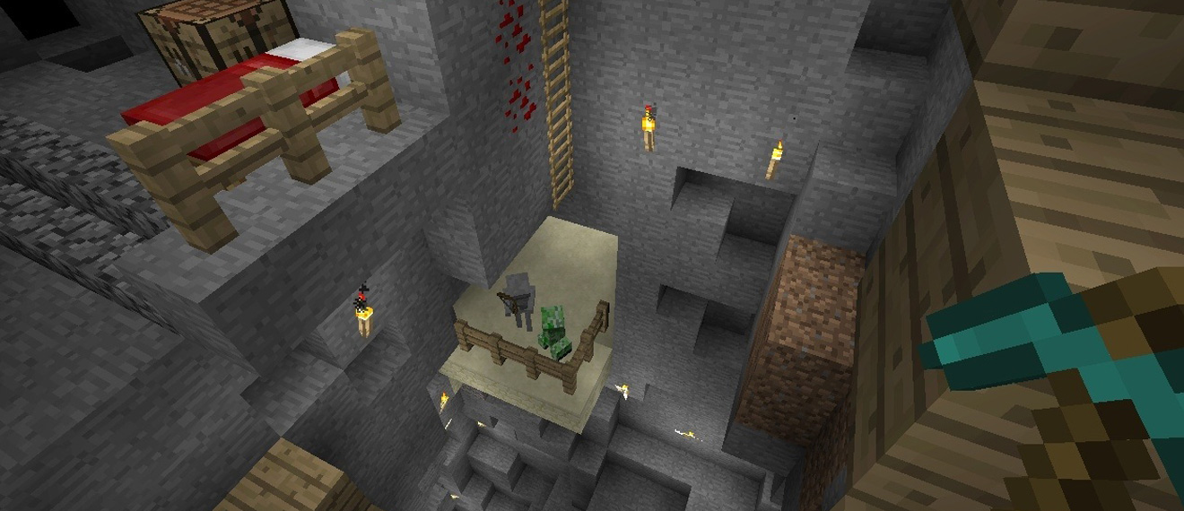 Minecraft è un esperienza che va vissuta principalmente con visuale in prima persona per avere un migliore riscontro sugli elementi con cui interagiamo, ma i nostalgici possono optare per la telecamera posta sopra le spalle dell’alter-ego ed attivabile mediante la pressione dello stick analogico destro del pad. Il comparto multiplayer consente ai giocatori, sino ad otto online o quattro in modalità split-screen, di cooperare e scambiarsi oggetti e risorse senza vincoli alcuni, di costruire edifici che persistono nella partita dell’host anche quando si passa alla modalità offline.