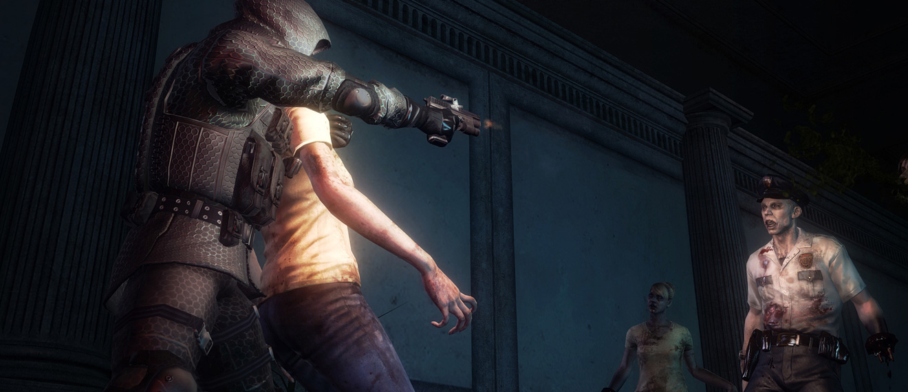 T-Virus, G-Virus, cambia il nome, il suo effetto, ma non il contesto. È giunto il momento di tornare a Raccon City per scoprire cosa ci hanno tenuto in serbo i canadesi di Slant Six Games, noti per la serie SOCOM. Resident Evil: Operation Raccoon City si incastona cronologicamente tra le vicende del secondo e del terzo capitolo della serie, questa volta facendocele vivere con gli occhi di una squadra speciale della Umbrella Corporation. I fan di vecchia data scopriranno come la compagnia in questione abbia cercato di insabbiare la fuga del virus dai laboratori ed infettato migliaia di cittadini inermi. Il team U.S.S., sotto il nostro comando, dovrà quindi recuperare prove, raggiungere i luoghi prefissati ed eliminare ogni ostacolo che gli si presenti davanti, sia esso infetto o meno. Come è noto, la serie Resident Evil sta lentamente scivolando nel baratro del genere action trascurando l’aspetto survival-horror che lo ha contraddistinto negli anni passati. Operation Raccoon City può essere considerato uno sparatutto in terza persona, essenzialmente privo di colpi di scena, suspence e dannatamente immediato come un classico gioco arcade da sala giochi. Avviata la campagna, infatti, appare subito la schermata di selezione del personaggio e del relativo equipaggiamento, senza alcuna ombra di introduzione alla storyline. La squadra speciale della Umbrella Security Service è composta da sei elementi che si differenziano tra di loro quasi esclusivamente per le abilità sbloccabili mediante l’esperienza maturata in missione. L’equipaggiamento, del resto, è uguale per tutti e comprende una serie di fucili e di pistole con caratteristiche diverse adatte ad ogni stile di gioco: durante le missioni, però, è possibile portare con sé soltanto altri tre agenti, siano essi pilotati dalla IA di gioco o da esseri umani online. Sul campo di battaglia i comandi sono piuttosto semplici e supportati anche da un’interfaccia grafica basilare, simile a quella vista nel quarto e quinto capitolo. Il sistema di copertura non richiede alcuna pressione di particolari tasti del pad, bisogna semplicemente avvicinarsi ad un qualsiasi oggetto per rannicchiarvisi contro: se da un lato questo sistema regala un pizzico di immediatezza alle fasi di gioco, dall’altro rischia di bloccare il cammino del giocatore ogni qual volta si avvicina ad un muro/cassa/auto/etc.. e nelle fasi più concitate non è per nulla piacevole.